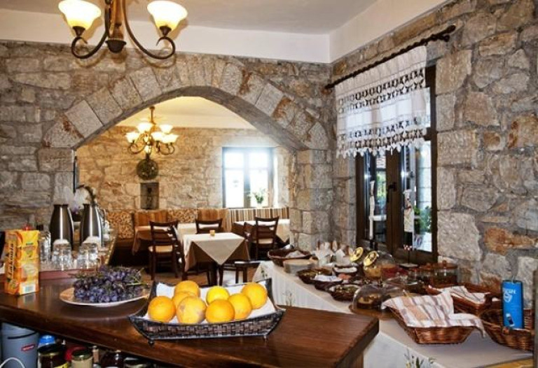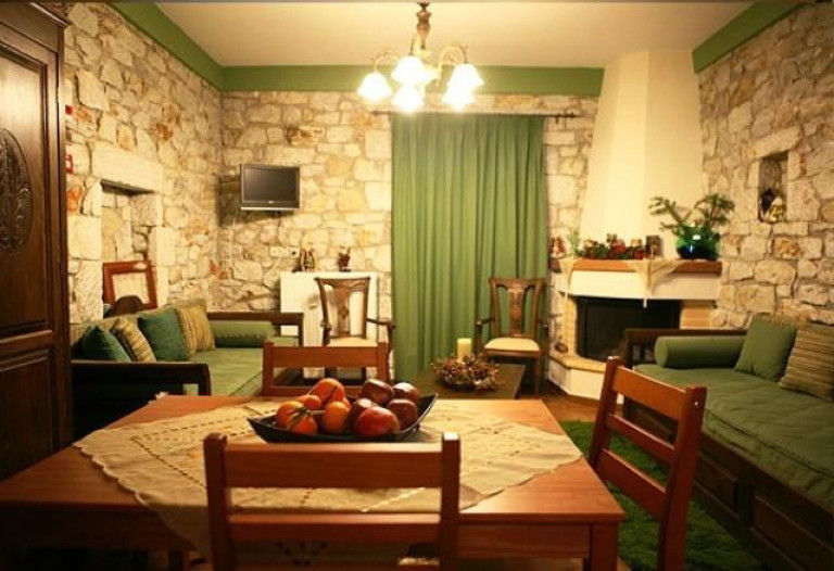 Двухкомнтатный люкс на первом этаже с гостиной. Здесь установлены камин и обеденный стол, обустроены полностью оборудованная кухня и просторный балкон с видом на окружающие холмы горы Парнон. Отдельная спальня располагает собственной ванной комнатой с душевой кабиной