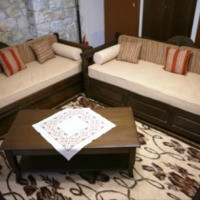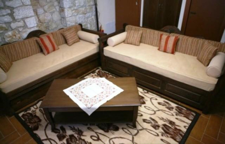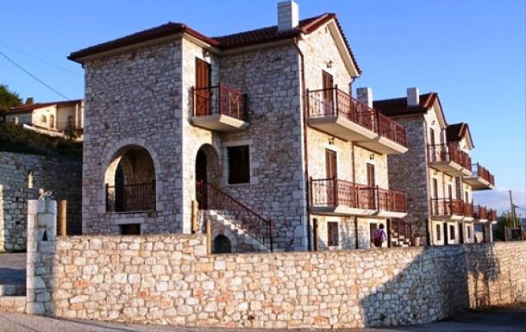 Двухэтажный мезонет с гостиной на первом этаже и 2 спальнями на втором этаже. Здесь установлены камин и обеденный стол, обустроены полностью оборудованная кухня и 2 ванные комнаты с душем. Оба этажа имеют отдельный вход и балкон с видом на окружающие холмы горы Парнон