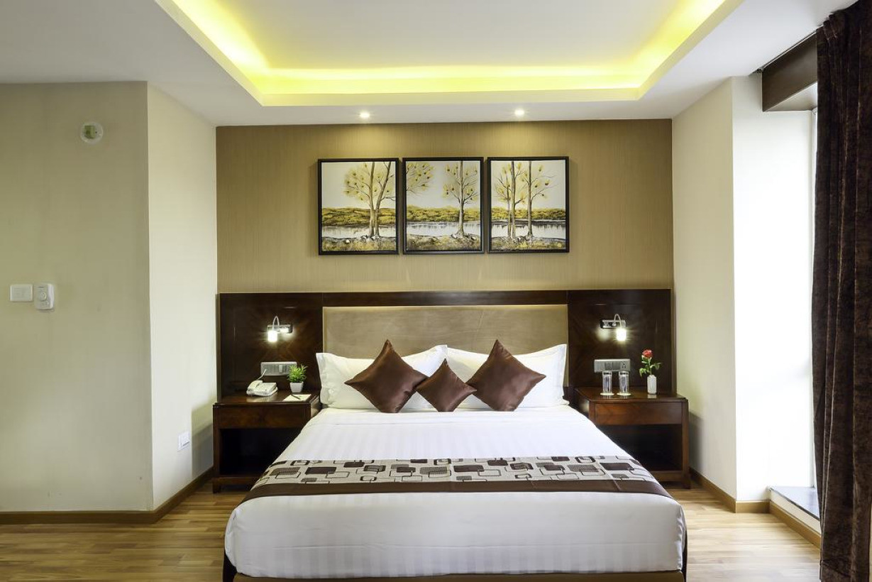 Двухместный номер с 1 кроватью, кондиционером и принадлежностями для чая/кофе. Пол выложен плиткой/мрамором