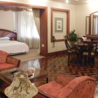 Двухместный номер с 1 кроватью или 2 отдельными кроватями располагает спутниковым телевидением, кондиционером и гостиной зоной