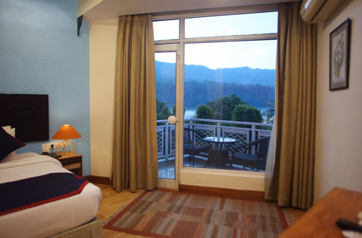 Люкс с деревянным полом и кондиционером, оформленный в спокойных пастельных тонах. Также к вашим услугам телевизор с плоским экраном, шкаф для одежды и собственная ванная комната с горячей/холодной водой, ванной и душем. В этих просторных люксах есть гостиная зона и балкон с панорамным видом на долину и реку Ганг