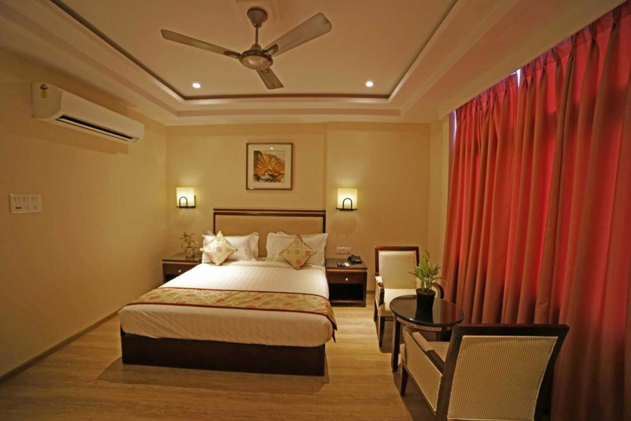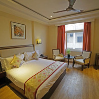Двухместный номер с 1 кроватью, кондиционером и телевизором со спутниковыми каналами. Пол выложен кафельной/мраморной плиткой