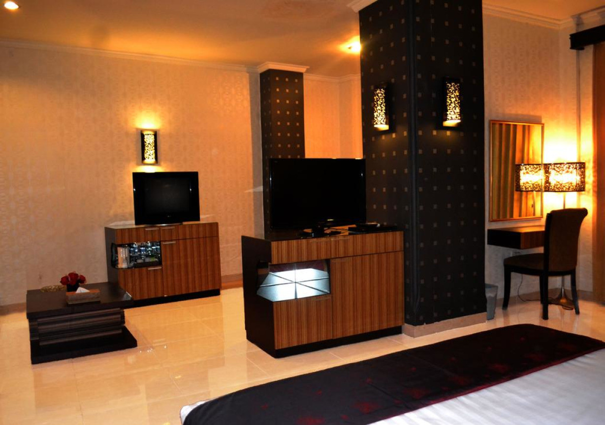 Более просторный люкс со шкафом для одежды, холодильником, электрическим чайником, телевизором с плоским экраном, спутниковыми каналами и CD/DVD-плеером, а также собственной ванной комнатой с душем или ванной. Гостям предоставляются бесплатные туалетно-косметические принадлежности, тапочки, полотенца и постельное белье. Из окон открывается вид на город