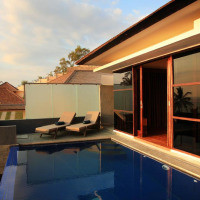 Вилла с собственным бассейном, гостиной зоной и диваном