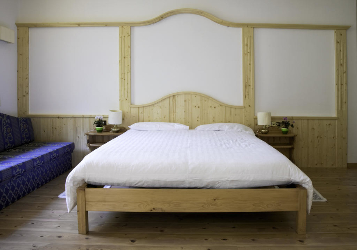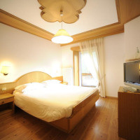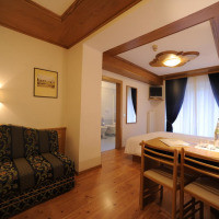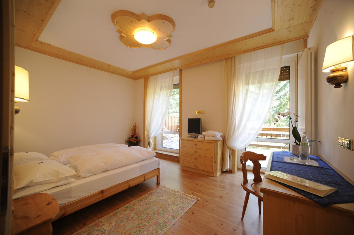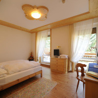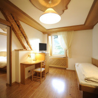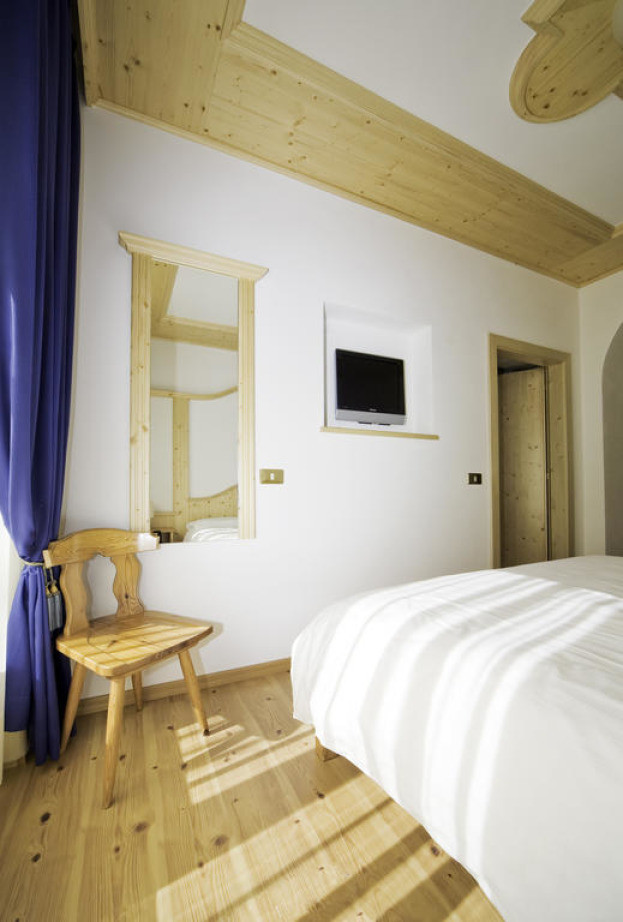 Номер оформлен в горном стиле и обставлен деревянной мебелью. Также к услугам гостей телевизор и собственная ванная комната