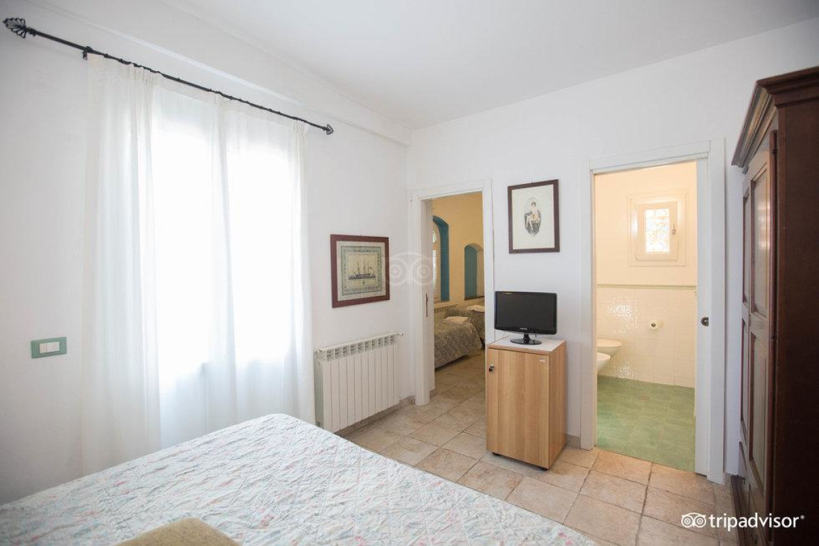Номер с кафельным полом, собственной ванной комнатой и телевизором с плазменным экраном, транслирующим спутниковые каналы. Из окон открывается вид на море или деревушку Джильо-Кастелло