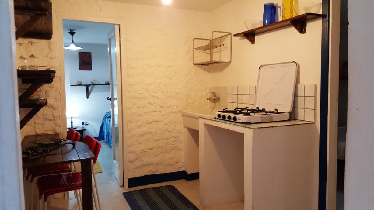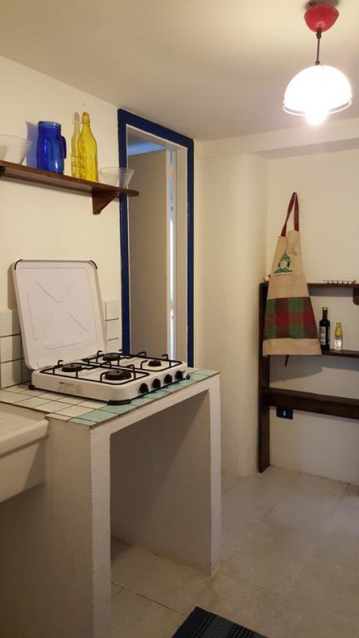 Этот дом для отпуска с обеденной зоной и плиточным/мраморным полом укомплектован кухонной утварью
