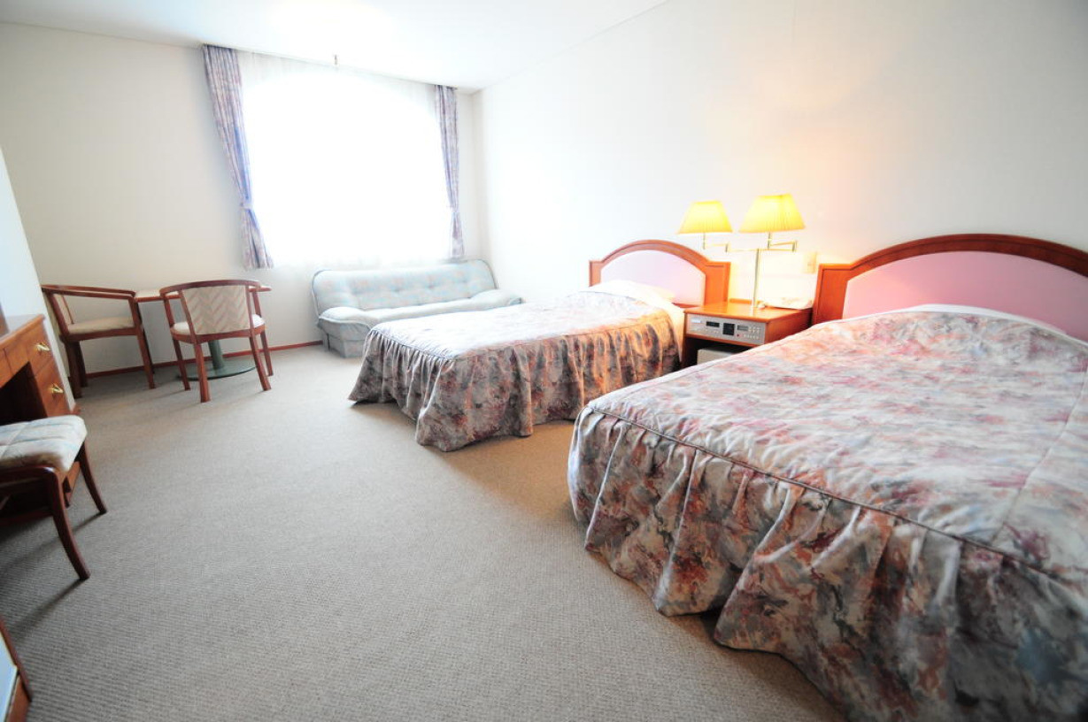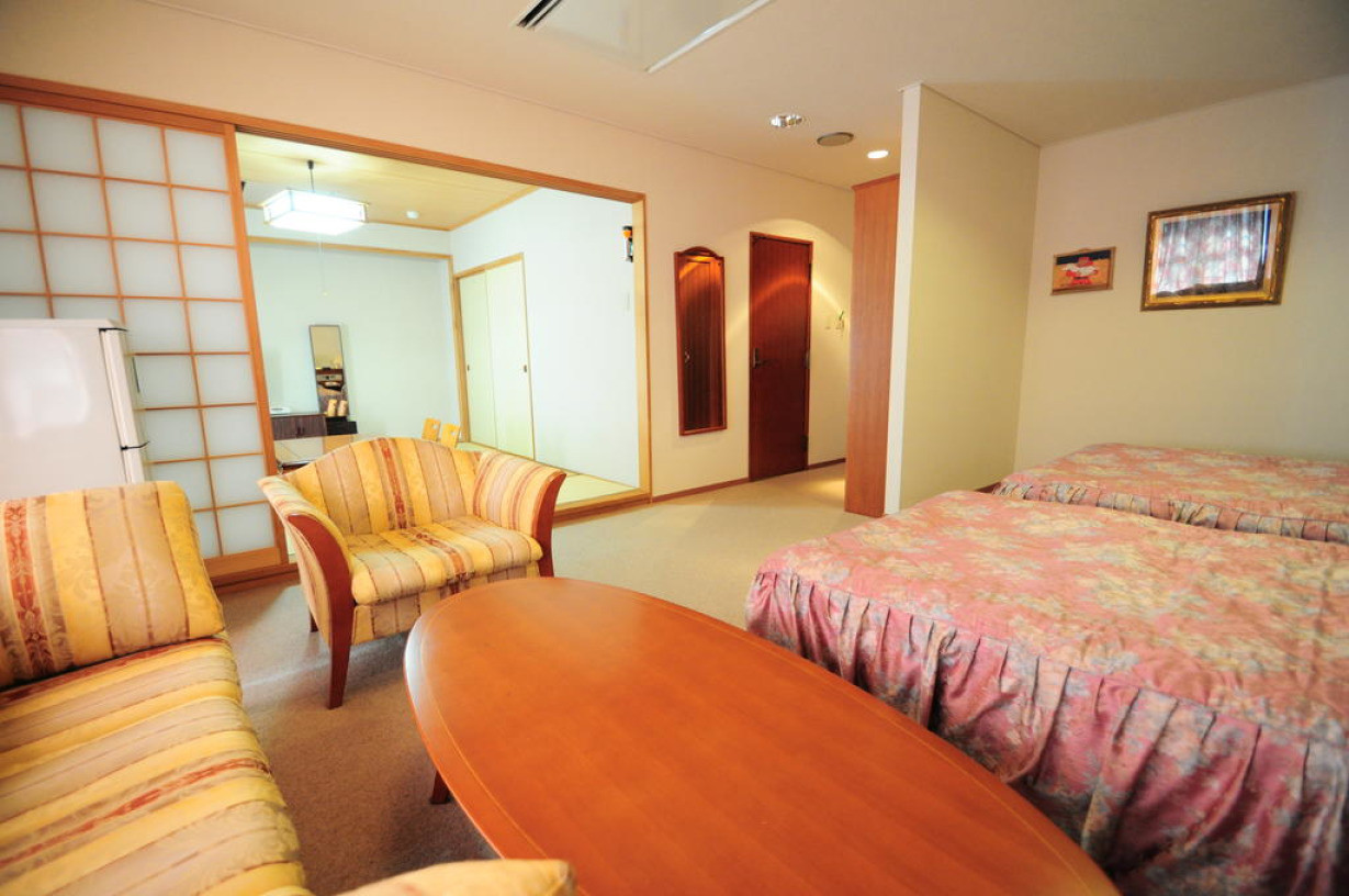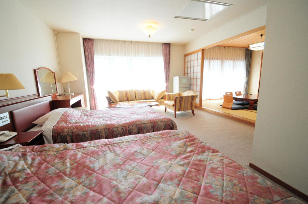 Номер с кроватями западного образца, гостиным уголком с застеленным татами (матами из плетеной соломы) полом, телевизором с плоским экраном и собственной ванной комнатой с феном, бесплатными туалетно-косметическими принадлежностями и тапочками. Предоставляется бесплатный проводной доступ в Интернет