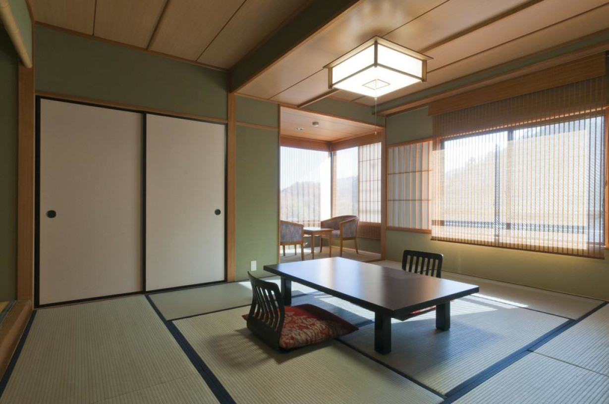 Номер с татами (соломенными циновками) на полу и японскими матрасами футон. В номере имеется ванная комната с ванной. В каждом номере установлены кондиционер и ЖК-телевизор. Номера оформлены в стиле дзен с бумажными ширмами сёдзи. Гостям предоставляются кимоно юката и зеленый чай