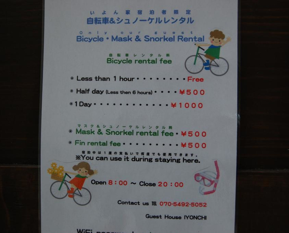 До пляжа можно дойти всего за 18 минут. Located on the beautiful Zamami Island, Guesthouse Iyonchi is a 5-minute walk from Zamami Port. A beach can be reached within a 15-minute walk. Free WiFi is provided throughout the property.Some rooms come with a TV and refrigerator. There are shared showers on site. Some rooms have a private toilet.There is a terrace where guests can unwind at Iyonchi Guesthouse. Other facilities include luggage storage.A Japanese set menu is offered for breakfast upon request. The property is a 2-minute walk from many restaurants, shops and a supermarket. Naha is a 70-minute ferry ride from the Zamami Port.