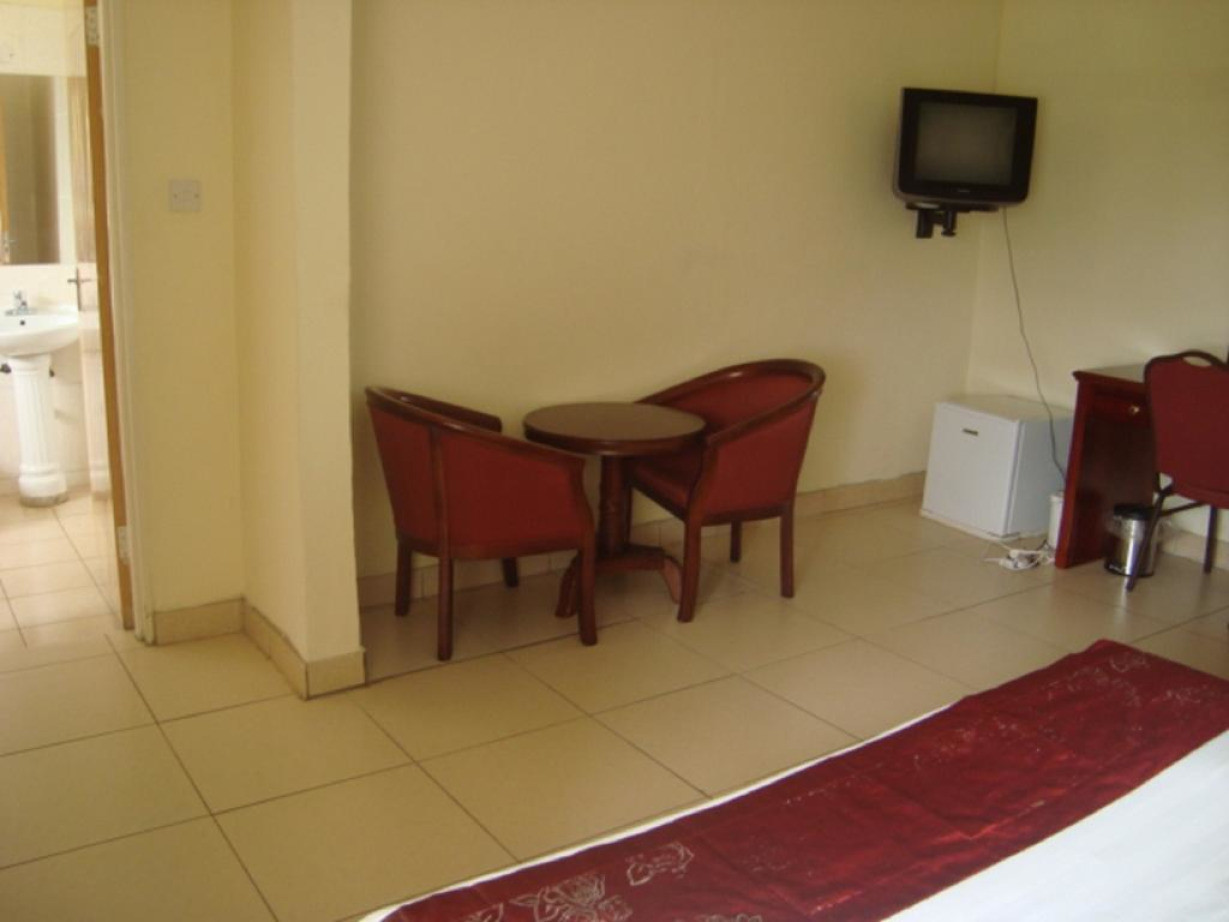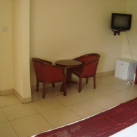 Номер с кондиционером, кабельным телевидением, холодильником и небольшой гостиной зоной