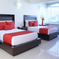 Просторный номер с 2 двуспальными кроватями, рабочим столом и WiFi. Ванная комната укомплектована феном и бесплатным набором туалетно-косметических принадлежностей. В стоимость проживания в номерах входит бесплатный американский завтрак для 2 гостей