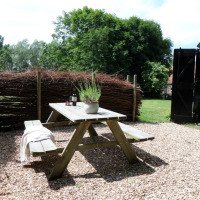 Отремонтированный дом имеет выход на террасу. В просторной гостиной установлена дровяная печь. Ванная комната открытой планировки располагает сауной и душем. Спальня находится на втором этаже. Завтрак, включающий яйца от собственных кур с фермы, подается ежедневно. Обратите внимание, что в спальню ведет крутая лестница