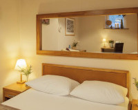 Элегантный светлый номер, обставленный деревянной мебелью в теплых тонах. В распоряжении гостей телевизор с кабельными каналами и собственная ванная комната с туалетно-косметическими принадлежностями