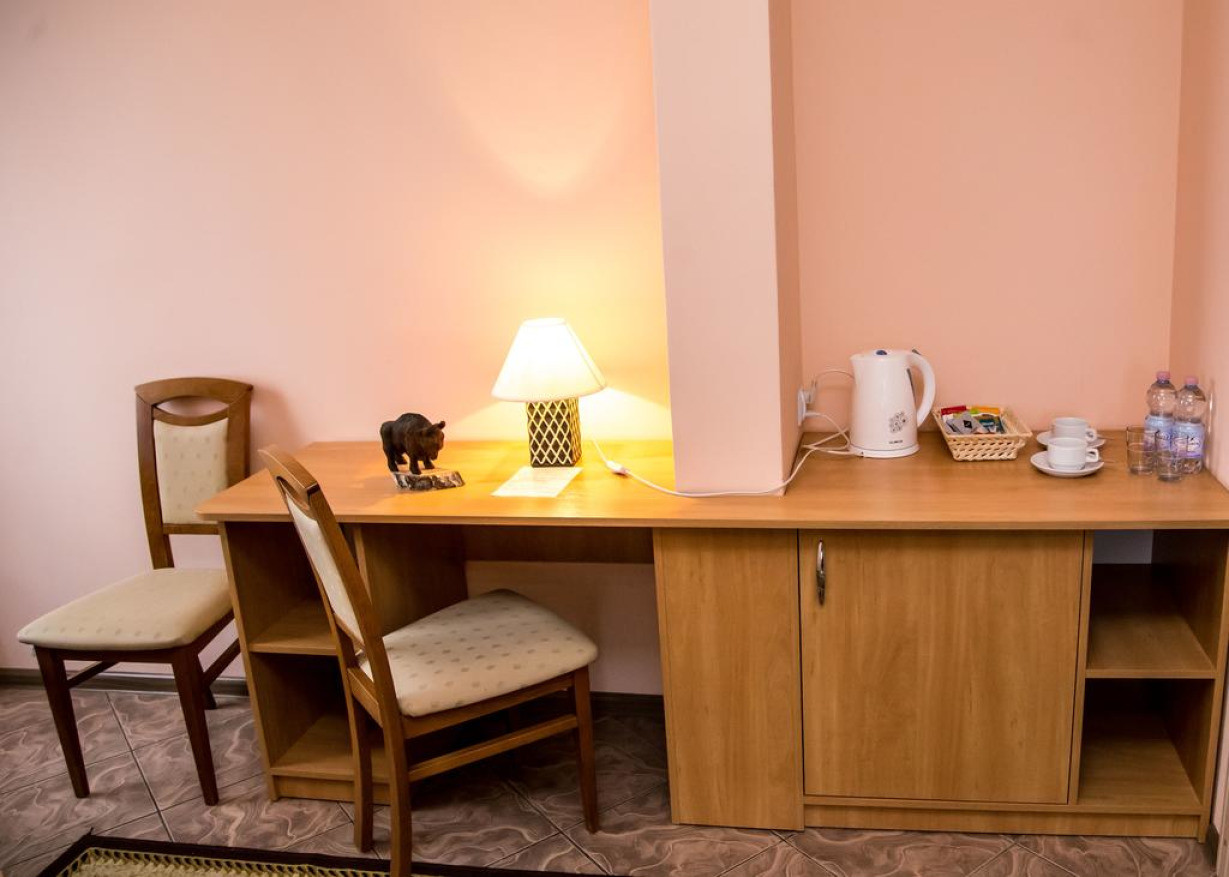 Мини-гостиница Zajazd Wrota Lasu расположена в 500 м от Беловежской пущи. К услугам гостей традиционно оформленные номера с бесплатным Wi-Fi.Все номера мини-гостиницы при ресторане Wrota Lasu оформлены в строгом стиле и располагают собственной ванной комнатой с душем, рабочим столом и полками.Гости могут поиграть в бильярд и поужинать в элегантном ресторане, где подают блюда региональной кухни и горячий завтрак. Здесь установлены деревянные столы с темными кожаными креслами.Отель Zajazd Wrota Lasu с бесплатной частной парковкой расположен в 600 м от железнодорожного вокзала Хайнувки.