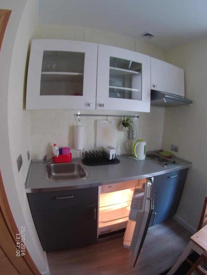Номер-студио с плитой, электрическим чайником и кухонными принадлежностями