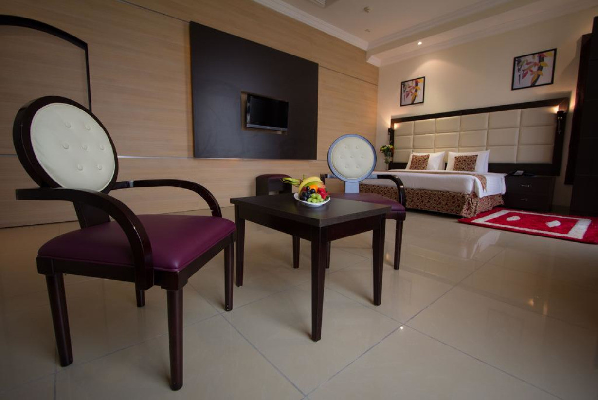 В этом люксе есть гостиная, телевизор с плоским экраном, мини-бар и собственная ванная комната