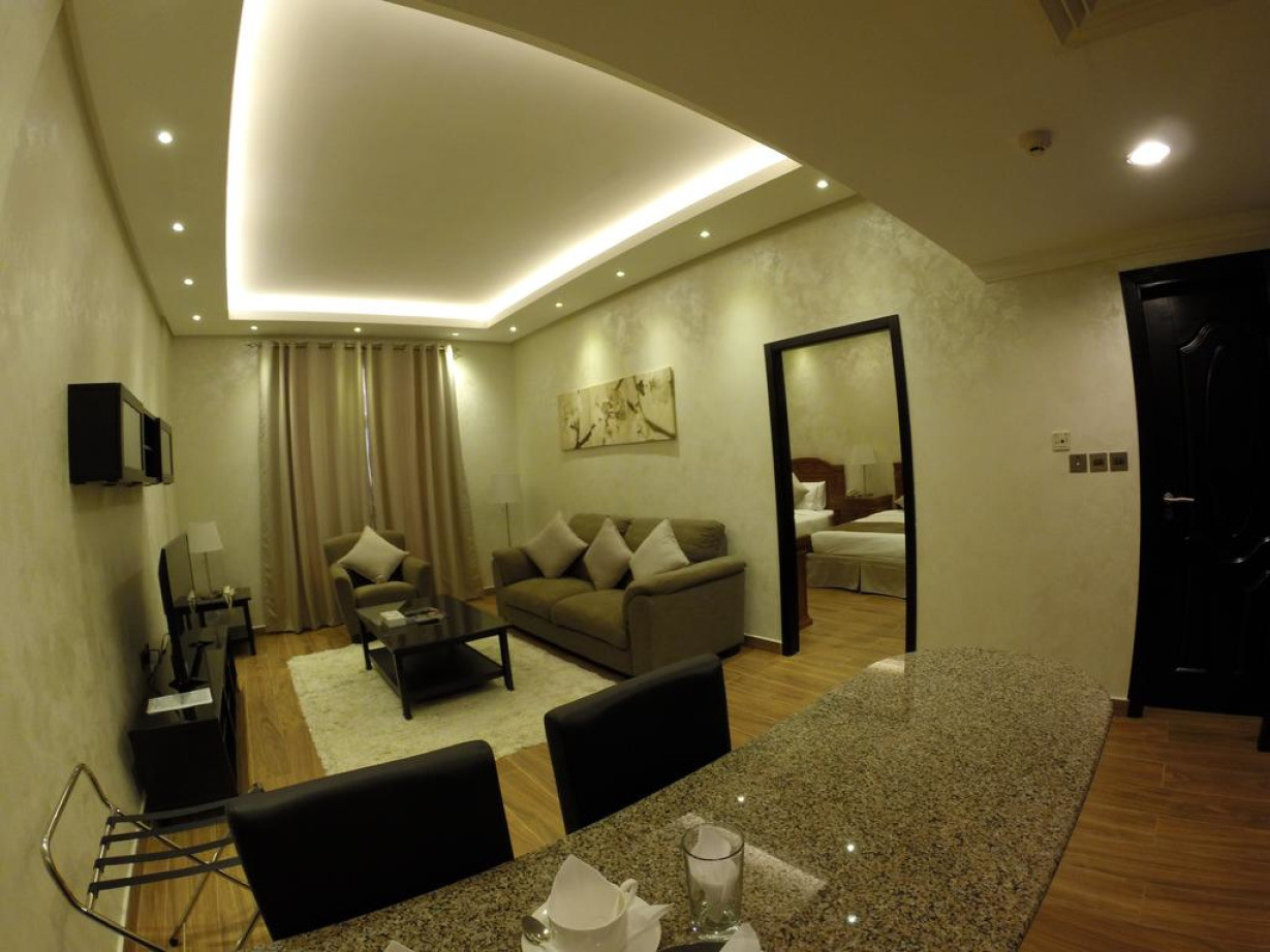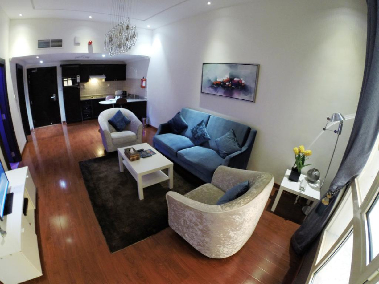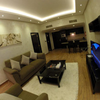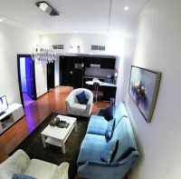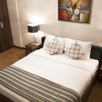 Просторный люкс с кондиционером, гостиной, полностью оборудованной кухней и собственной ванной комнатой. Из окон открывается вид на город