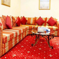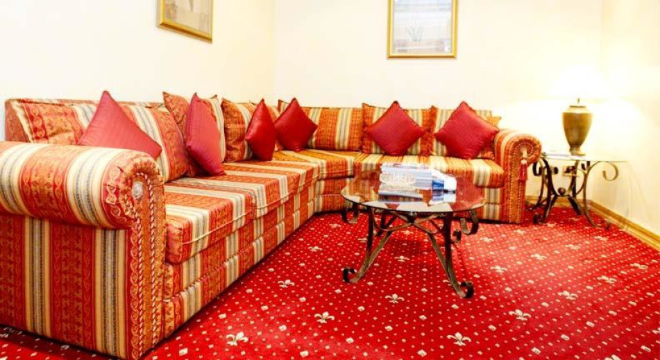 Современный кондиционированный номер с роскошными шторами и постельными принадлежностями красного цвета. Номер располагает небольшой гостиной зоной с телевизором со спутниковыми каналами, шкафом для одежды и мини-баром. В ванной комнате, укомплектованной бесплатным набором туалетно-косметических принадлежностей, установлена ванна и душ