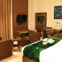 В этом люксе к услугам гостей диван, мини-кухня и кондиционер