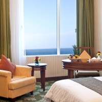 Представительский люкс с кондиционером, телевизором с плоским экраном, мини-баром, письменным столом, сейфом и утюгом. В ванной комнате с ванной и душем предоставляются бесплатные туалетно-косметические принадлежности, фен, халаты и тапочки. Из окон открывается вид на море