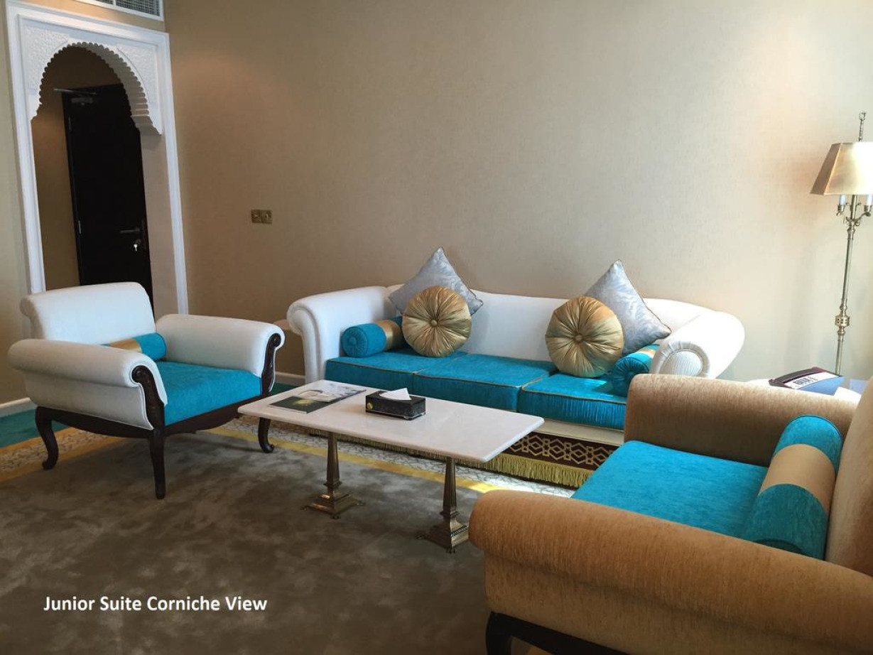 Просторный люкс с видом на набережную Корниш, отдельной спальней и гостиной с обеденной зоной, мини-кухней и собственной ванной комнатой.