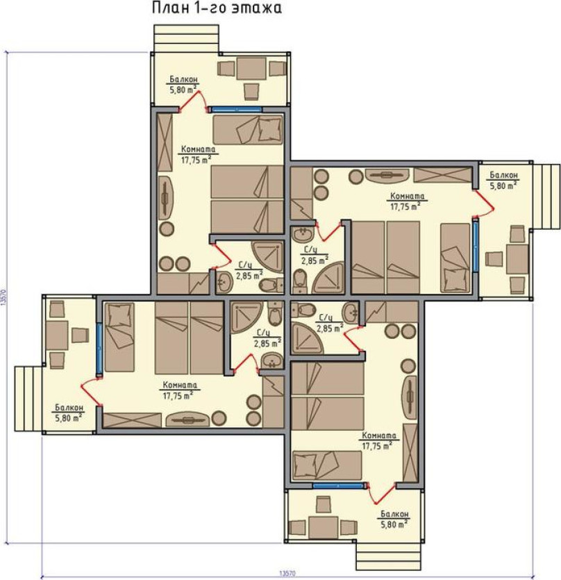 Семейный номер с отдельным входом и балконом