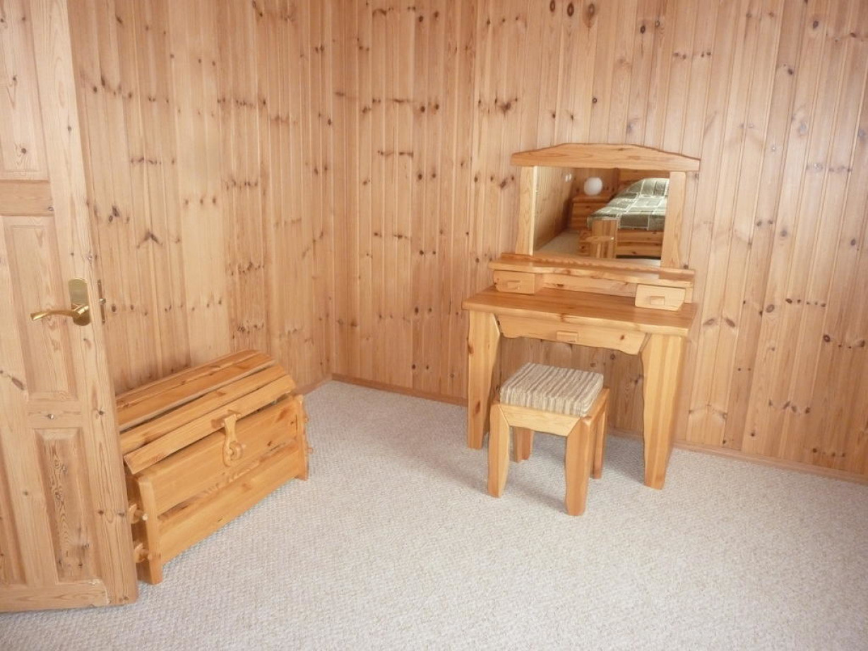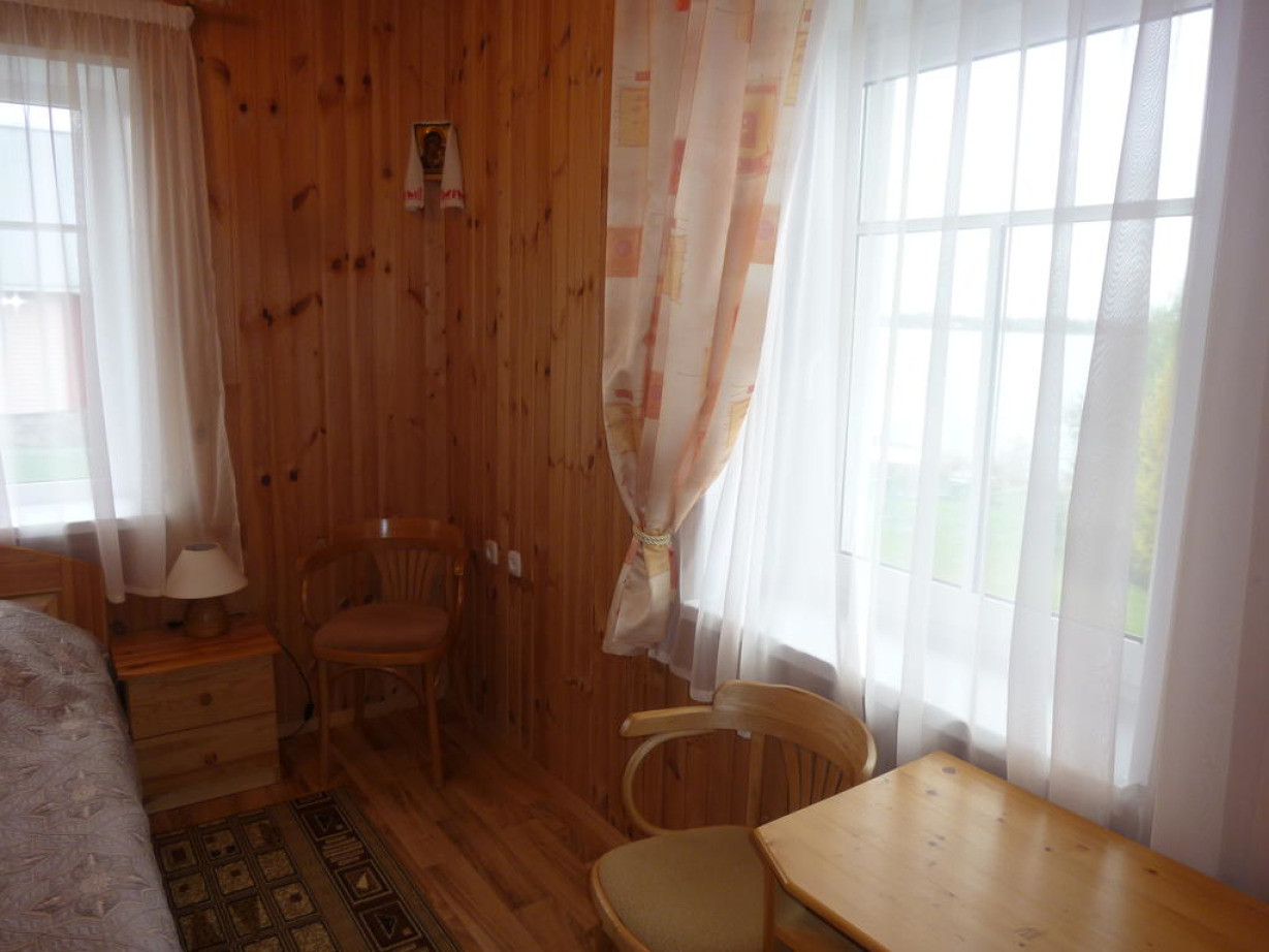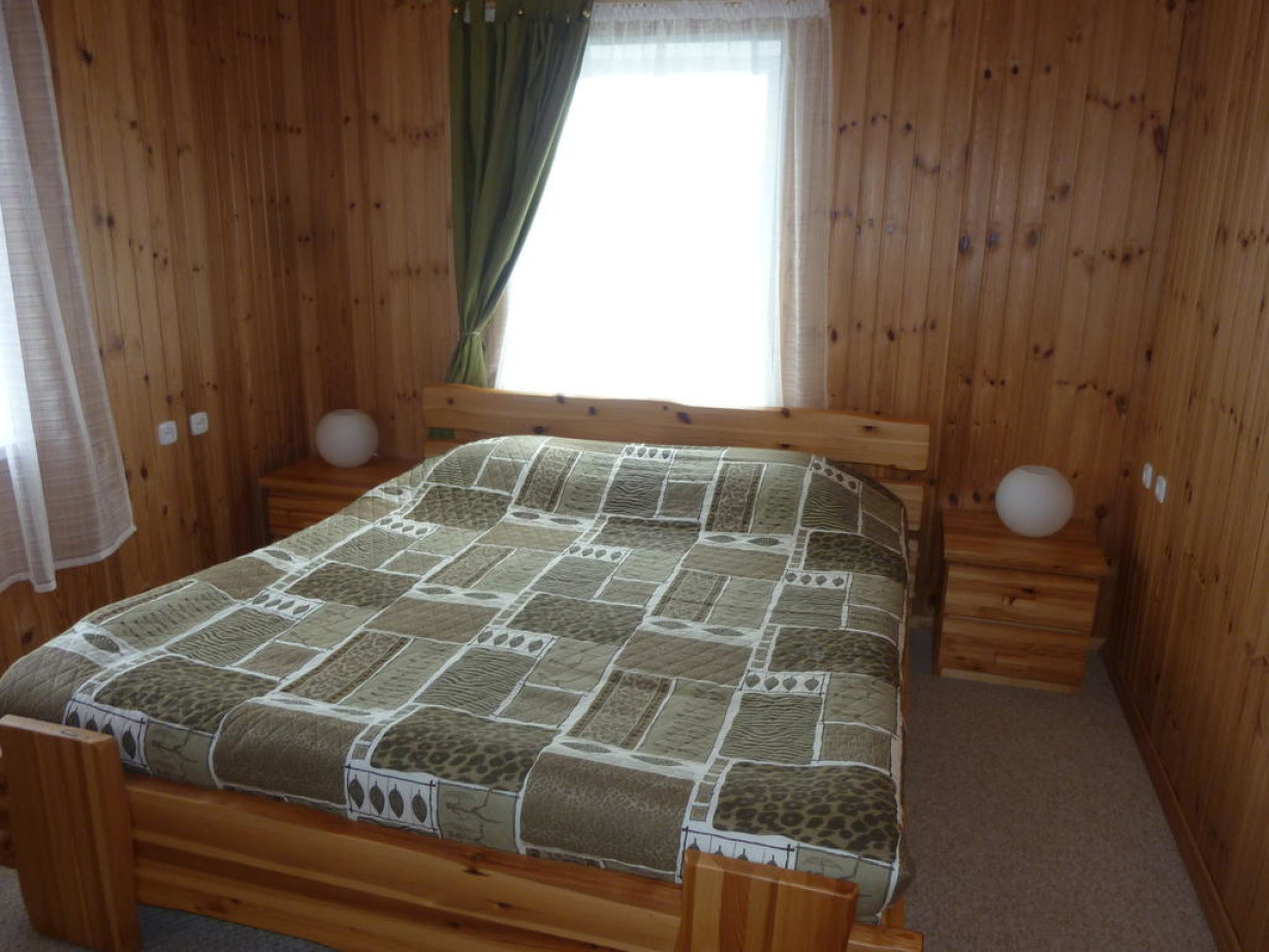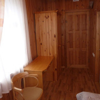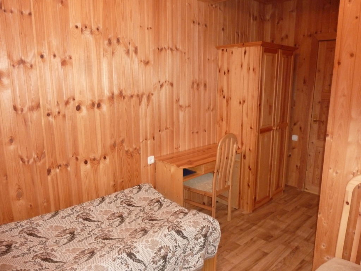 Светлый номер располагает деревянной мебелью и собственной ванной комнатой