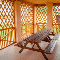 Бунгало с диваном, принадлежностями для барбекю и посудой