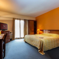 Номер с современным интерьером. В числе удобств — кондиционер, телевизор со спутниковыми каналами, телефон и ванная комната с душем