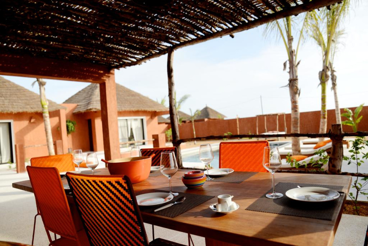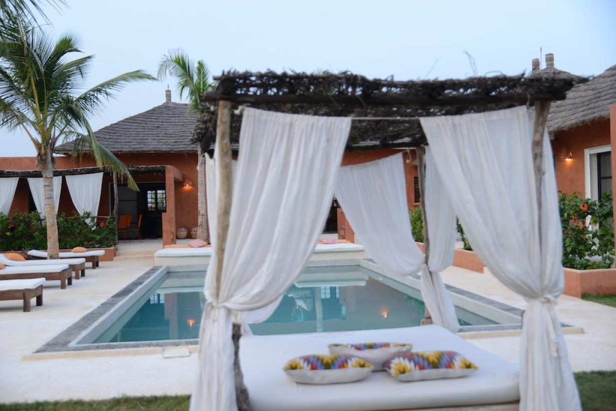 Вилла Domaine des Cauris с садом расположена в городе Сали Портудал, в 5 км от города Сомон. Из окон открывается вид на бассейн. На территории обустроена бесплатная частная парковка.В числе удобств гостиный уголок, обеденная зона и кухня с духовкой и микроволновой печью. Гостям предоставляются полотенца и постельное белье. На вилле предоставляется бесплатный Wi-Fi.Гости могут взять напрокат автомобиль. В окрестностях популярен гольф. Гости могут заняться различными видами активного отдыха, в том числе верховой ездой и рыбной ловлей. Расстояние до международного аэропорта имени Леопольда Седара Сенгора составляет 58 км.