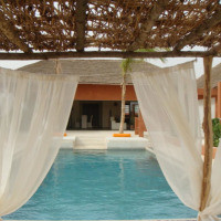 Вилла с кондиционером, собственным бассейном, садом, террасой и диваном