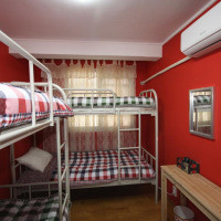Номер с 2 двухъярусными кроватями. На верхнем ярусе расположена односпальная кровать, а на нижнем — более широкая кровать