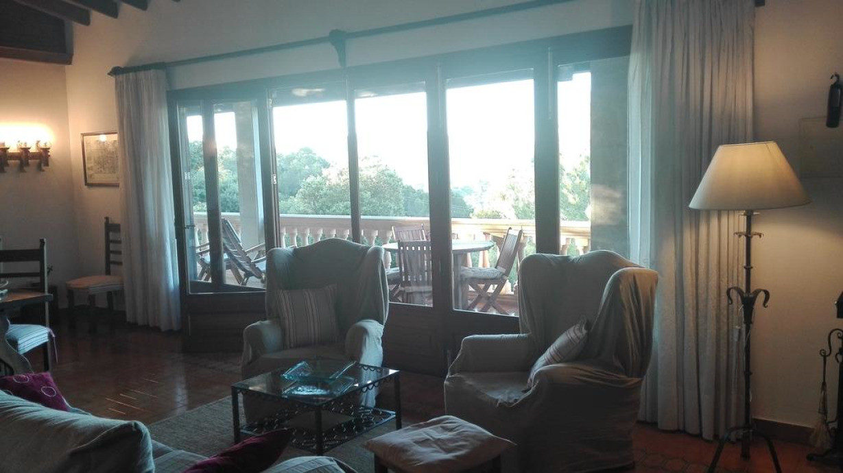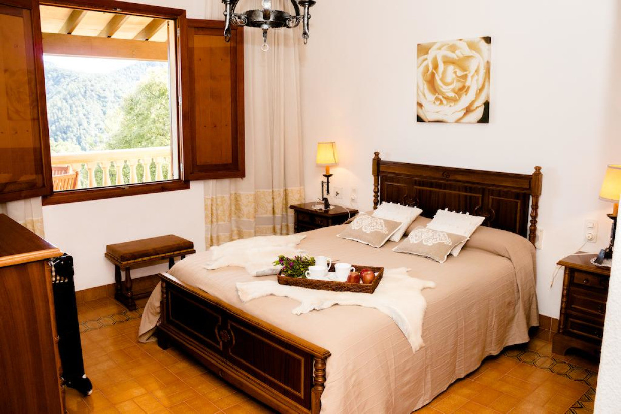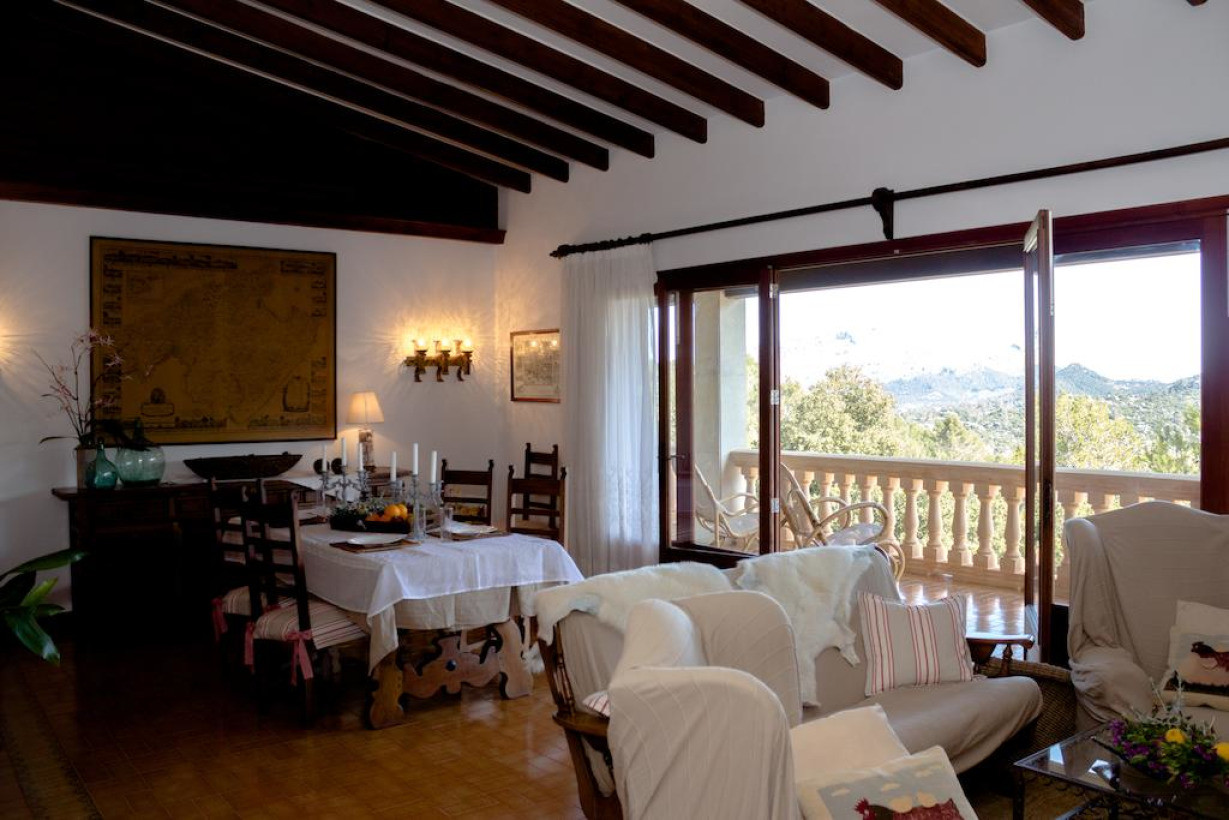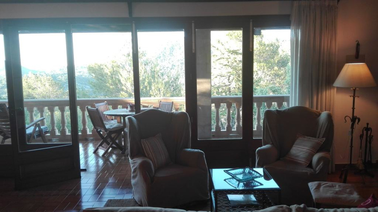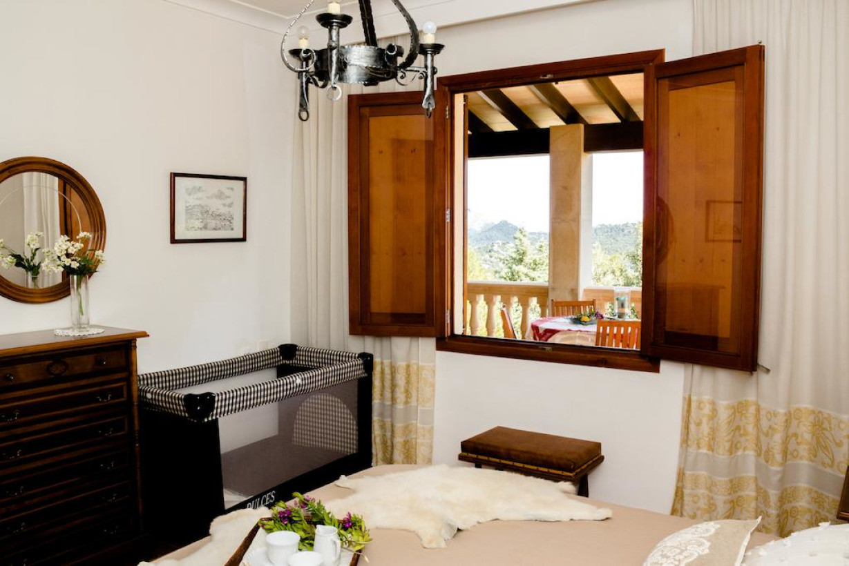 Загородная вилла с кондиционером, 2 двухместными спальнями с 2 отдельными кроватями и двухместная спальня с 1 кроватью. В гостиной есть камин, диван и спутниковое телевидение. На кухне можно пользоваться духовкой, микроволновой печью, кофеваркой и стиральной машиной. С просторной террасы открывается прекрасный вид на горы Трамунтана. Постельное белье и полотенца включены в стоимость проживания