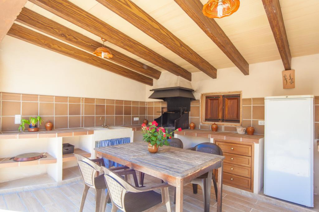 Вилла с частным бассейном, меблированной террасой с принадлежностями для барбекю, собственным фруктовым садом и огородом. Дом построен в традиционном для Майорки стиле, на 2 этажах расположены 2 спальни с двуспальными кроватями и 2 спальни, в каждой из которых установлены 2 односпальные кровати. Все они оборудованы кондиционером, из окон открывается вид на сад. Гостиная/столовая оснащена обеденным столом, диванами и телевизором с плоским экраном со спутниковыми каналами, на кухне имеется тостер, кофемашина, электрическая духовка и стеклокерамическая плита. К числу других удобств относится стиральная машина, утюг и гладильная доска