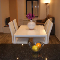 Апартаменты находятся на 1 этаже и располагают двуспальной кроватью и гостиной-столовой с двуспальным диваном-кроватью. На всей территории предоставляется бесплатный Wi-Fi