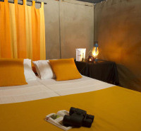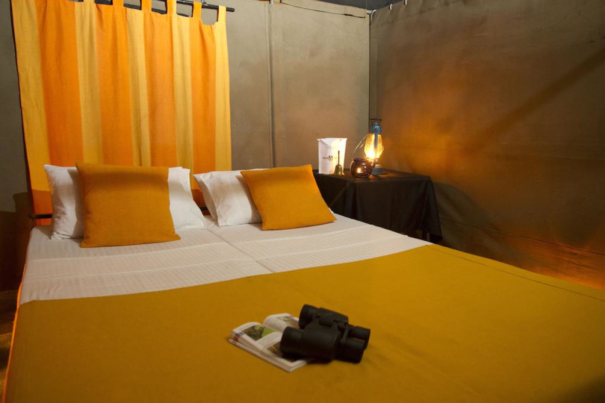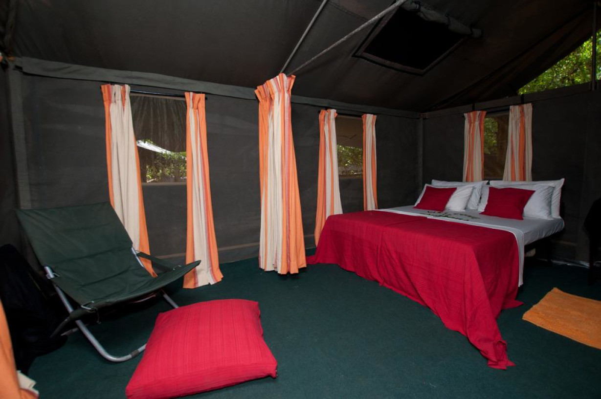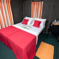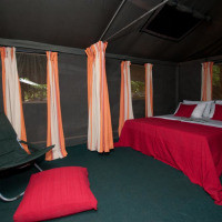 Шатры с ковровым покрытием на полу. В числе удобств — зона для отдыха на открытом воздухе и собственная ванная комната, в которой установлен душ с горячей водой. В распоряжении гостей фонарь, зонтики и стеллаж для багажа. В стоимость предложения входит: - все входные билеты, сборы парка и правительственные налоги на весь период пребывания; - услуги опытного гида-натуралиста; - утренние и вечерние поездки на джипах с сиденьями, установленными по ходу движения автомобиля; - бесплатная корзина для пикника с охлажденными напитками и закусками для обеда на сафари; - свежеприготовленный завтрак и обед в кемпинге; - неограниченное количество чая/кофе, свежих фруктов, закусок, соков, безалкогольных напитков и воды; - напитки перед ужином у костра; - специальный ужин барбекю с фирменными блюдами; - устройства для зарядки ноутбука и цифровой камеры