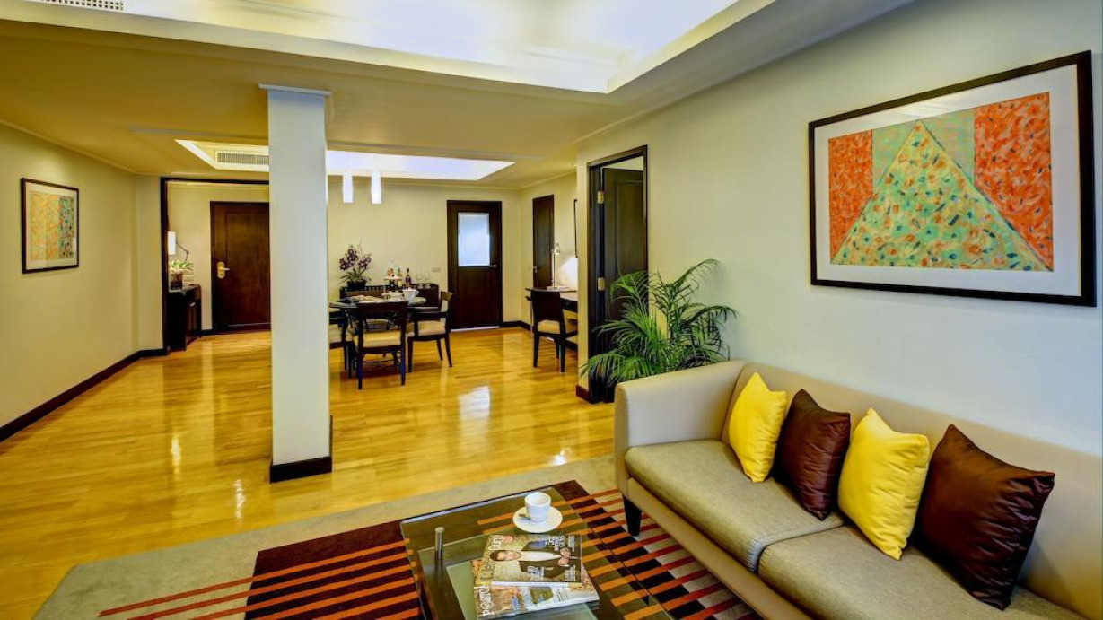 Люкс с гостиной зоной, обеденным уголком и отдельным кабинетом. К услугам гостей просторная главная спальня и ванная комната