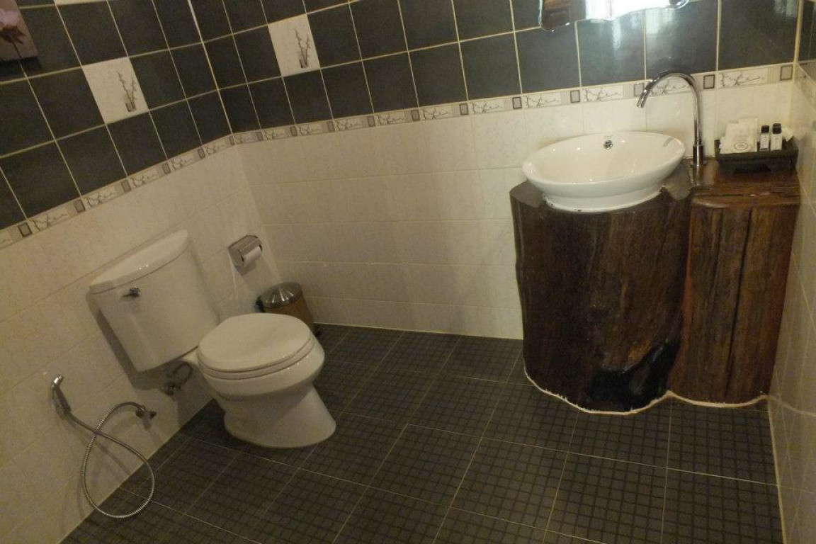 Коттедж с мебелью из тикового дерева. К услугам гостей балкон, кондиционер, телевизор с плоским экраном и кабельными каналами, холодильник и мини-бар