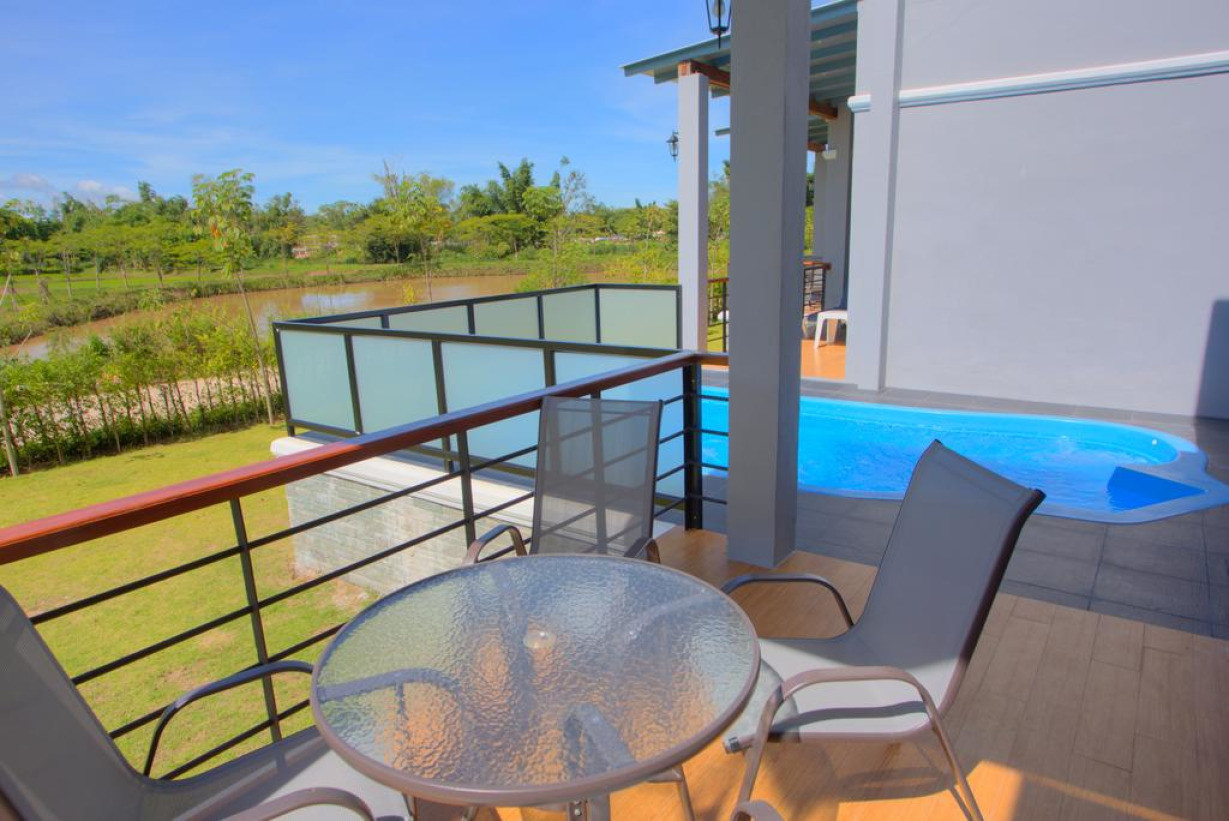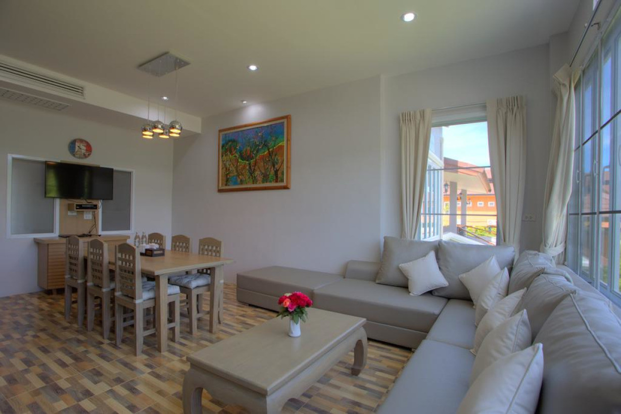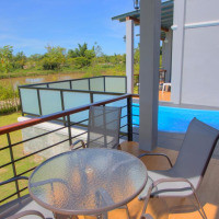 Вилла с балконом оснащена кондиционером и электрическим чайником