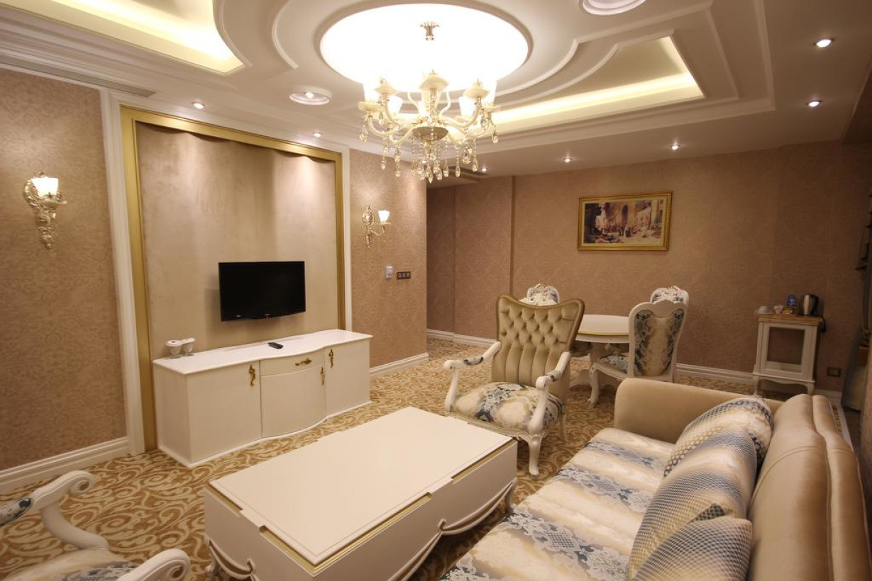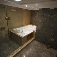 Двухместный номер с 1 кроватью, гостиным уголком и гидромассажной ванной. Пол выложен кафельной/мраморной плиткой