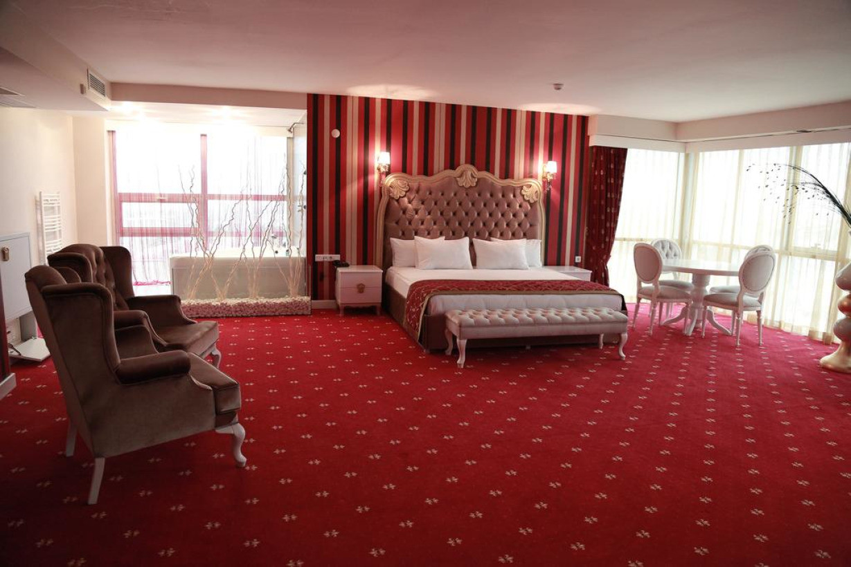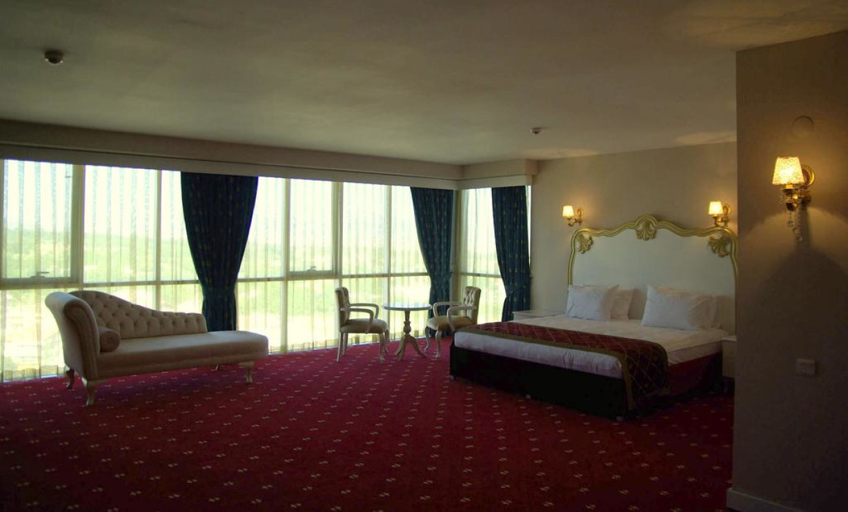 В этом элегантно оформленном люксе есть телевизор с плоским экраном, кондиционер и собственная ванная комната. Из окон открывается вид на город и природу. В некоторых люксах установлена гидромассажная ванна