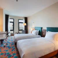 Звукоизолированный двухместный номер с 2 отдельными кроватями, кондиционером и мини-баром
