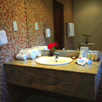 Одноместный номер с кондиционером. Пол выложен кафельной/мраморной плиткой. Гостям предоставляется банный халат