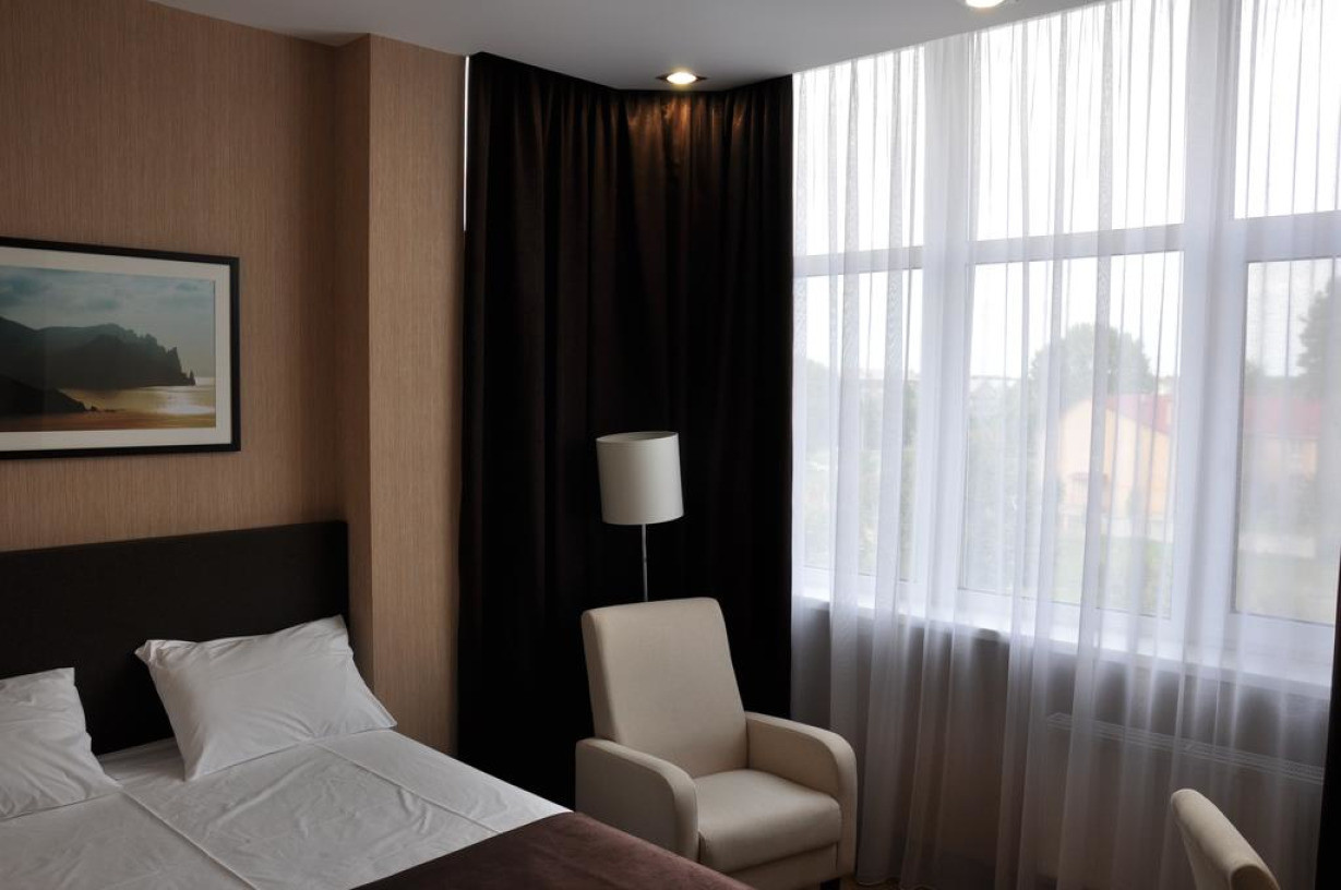 Более просторный люкс с кондиционером, феном, электрическим чайником и телевизором с плоским экраном и спутниковыми каналами. В люксе обустроена гостиная зона
