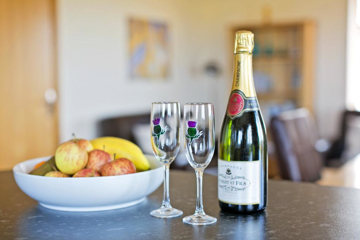 Шале с большой кухней открытого плана располагает гостиной зоной, заполненной светом от больших окон с красивым видом и французских дверей. Полностью оборудованная кухня укомплектована электрической духовкой и варочной панелью, стиральной машиной и сушилкой, холодильником с морозильной камерой, микроволновой печью и посудомоечной машиной. Гостиная зона оснащена большим телевизором с плоским экраном, игровой приставкой Play Station 3 для доступа в Интернет и игр, CD и DVD и Blu-Ray-плеерами, предоставляется бесплатный WiFi. Обеденная зона через французские двери выходит на открытый настил с видом на водный поток и болотистую местность на южную сторону, и на море - на западе. Каждая спальня оснащена кроватью размера «super-king-size», которая может быть преобразована в 2 односпальные кровати. Спальни просто и при этом со вкусом обставлены дубовой мебелью. Светлая, наполненная воздухом ванная комната укомплектована ванной, туалетом, умывальником с зеркалом. Кроме того к услугам гостей большая безбарьерная душевая кабина, облицованная гладкой испанской керамогранитовой плиткой