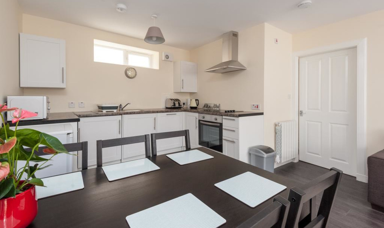 Апартаменты с плитой, кухонными принадлежностями и стиральной машиной