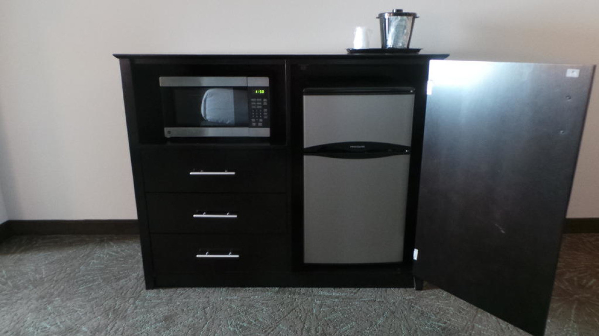 Номер оснащен телевизором с кабельными каналами. В числе удобств — микроволновая печь и холодильник