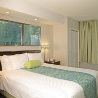 В люксе установлен телевизор с платными и бесплатными кабельными каналами. В числе удобств микроволновая печь, небольшой холодильник и принадлежности для кофе