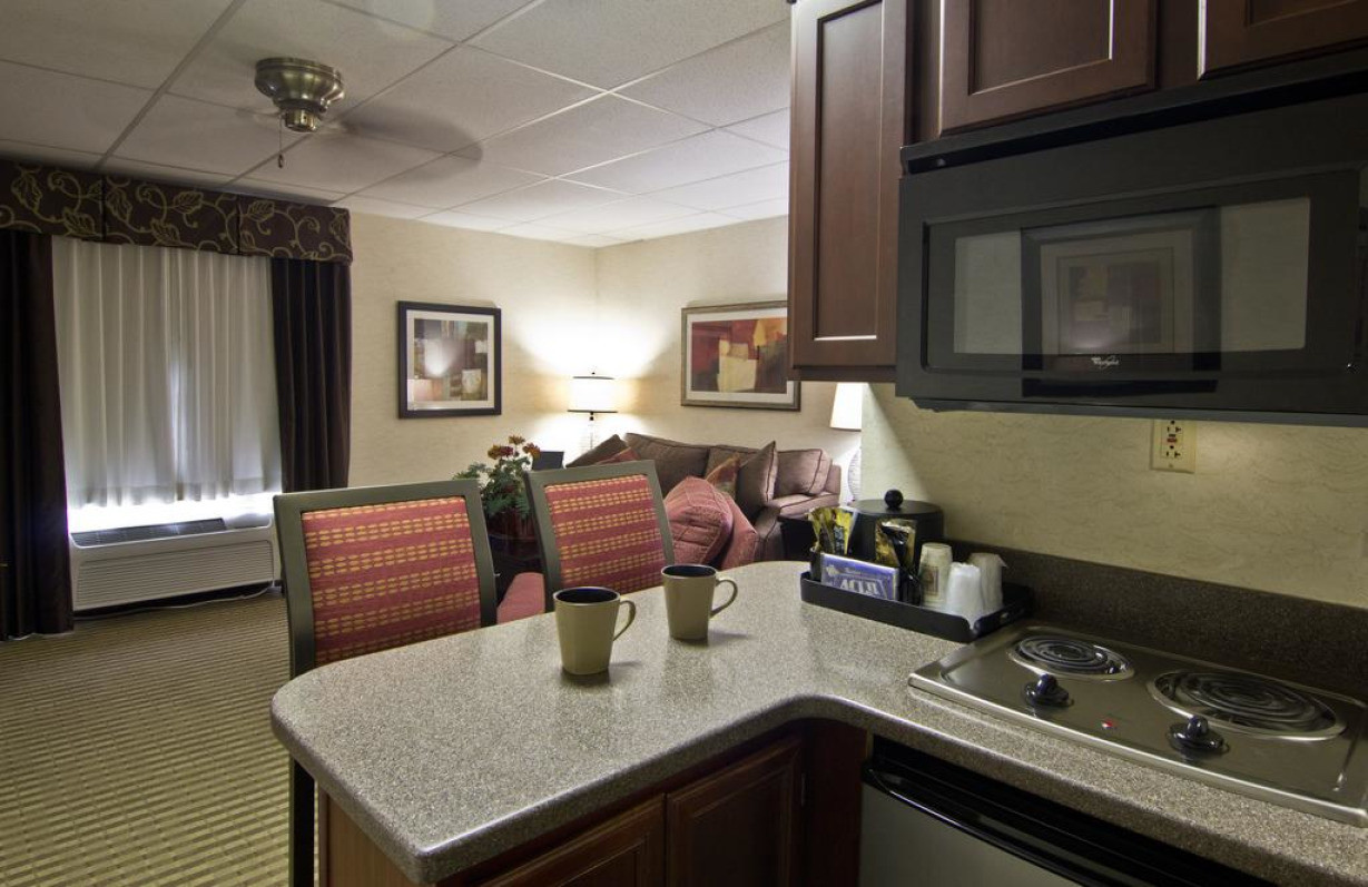 Номер с микроволновой печью и кофемашиной, а также телевизором с плоским экраном и кабельными каналами